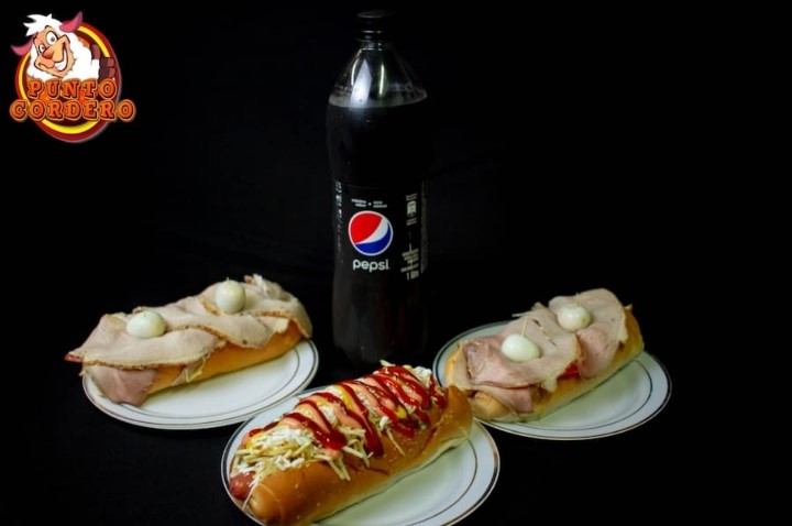 Hamburguesa de Cordero (Sin Papa)*2 + Perro Tradicional (Sin Papa)*1 + Gaseosa Econo Litro*1