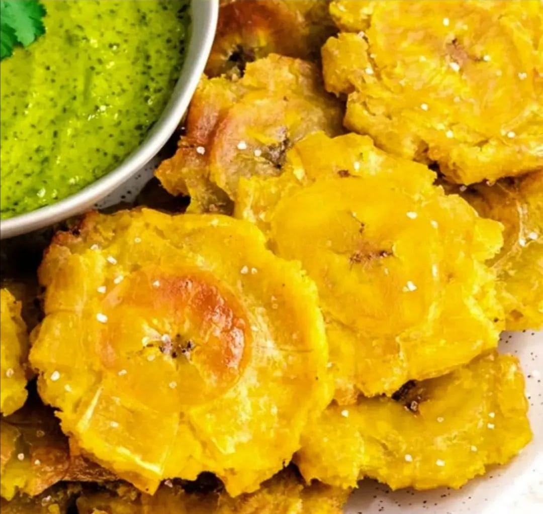 pollo y carne, Acompañado de patacon , ensalada y sopa del día