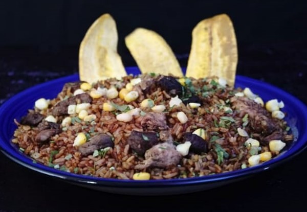 1100gr de Arroz pilaf, carne de cerdo, res, pollo y maíz.