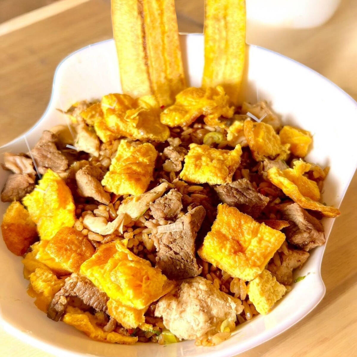 1100gr de arroz con Carne de cerdo, res, pollo, tortilla de huevo en cuadritos.