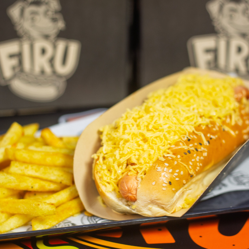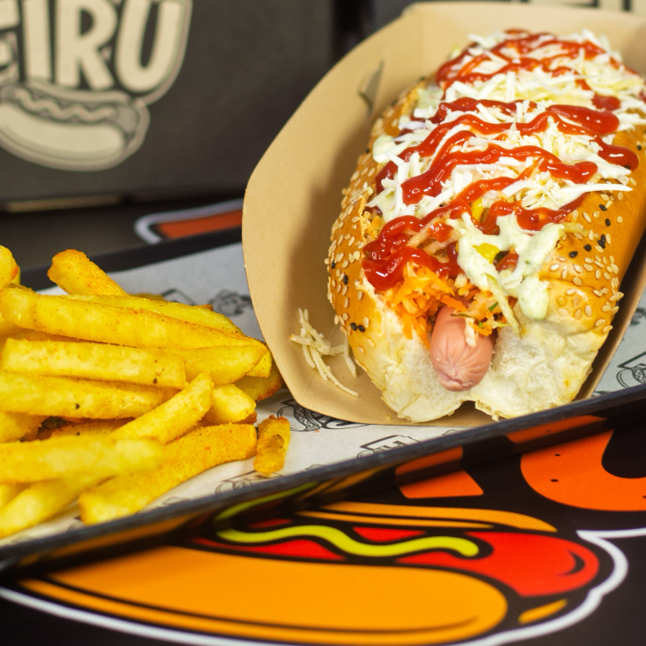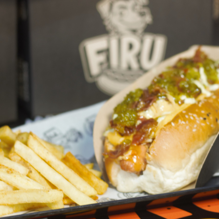 Delicioso pan suavecito, salchicha viena premium, cebolla fresca, ensalada coleslaw, papas crocantes, salsas clásicas y queso costeño