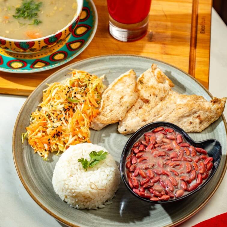 Bebida del Día 250 Ml*1 + Sopa del Día*1 + Arroz Blanco*1 + Pechuga 125 Gr*1 + Ensalada del Día*1 + Porción de frijoles*1