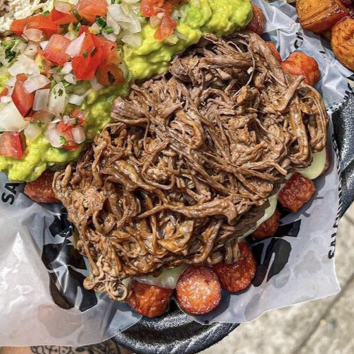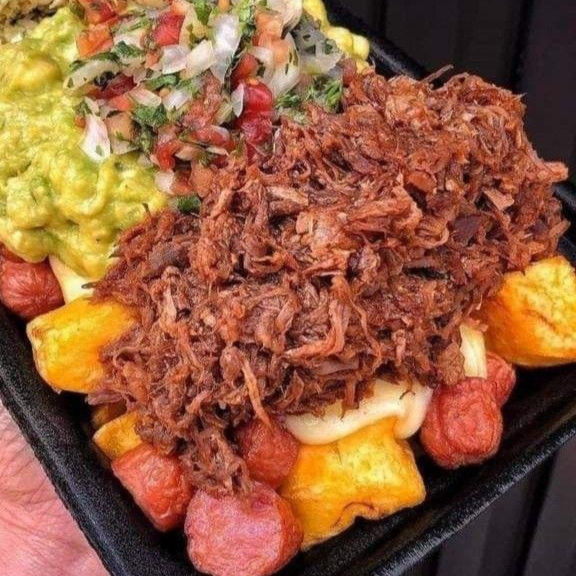 Papas a eleccion, salchichas,maduritos ,maiz,queso,pulled pork,guacamole,pico de gallo