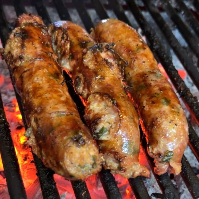 CHORIPAN*2 (pan de finas hierbas, jugoso chorizo al carbón , salsas y toppings a elección )