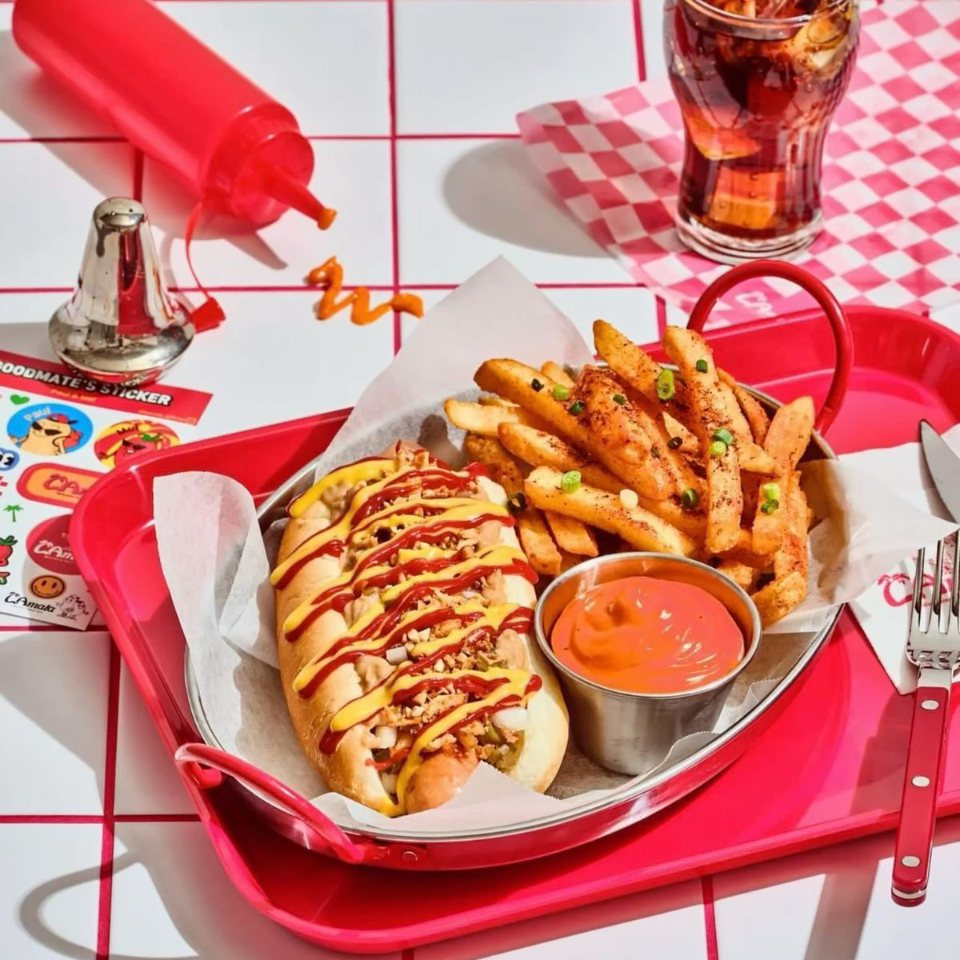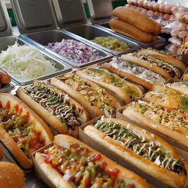 Base de pan parmesano con chorizo al carbón o salchicha artesanal de cerdo+ los toppings y salsas de tu preferencia sin limites