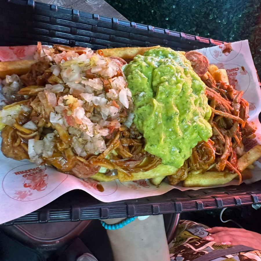 Papas a eleccion , salchicha, pulled pork ,pico de gallo,guacamole