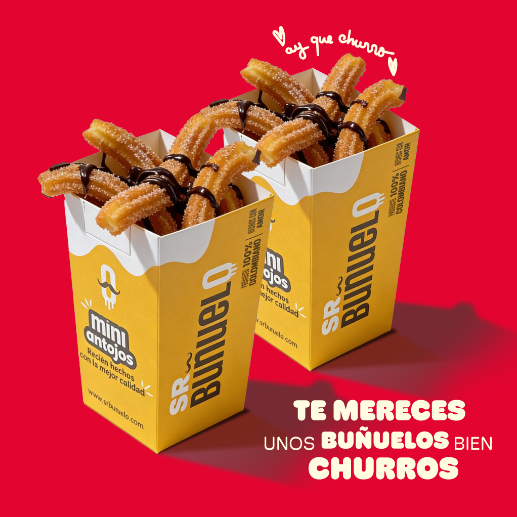 El snack perfecto para antes o después… 2 cajitas con 7 mini buñuelos cada una + su topping a elección. Pa’ que el antojo siempre tenga respuesta