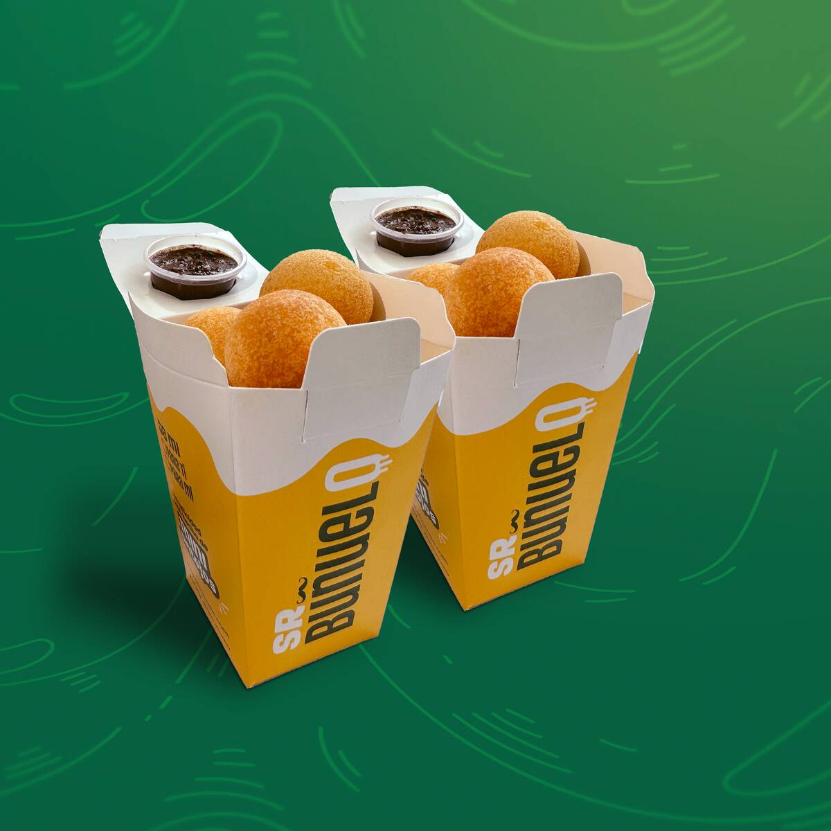 El snack perfecto para antes o después… 2 cajitas con 7 mini buñuelos cada una + su topping a elección. Pa’ que el antojo siempre tenga respuesta