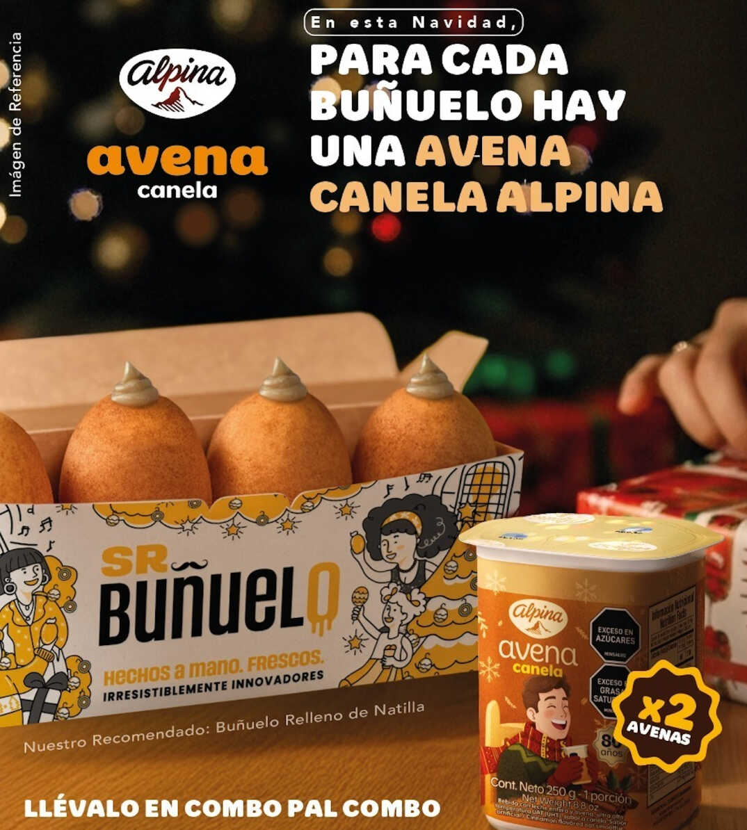 8 buñuelos crujientes y recién hechos(2 tradicionales, 2 de queso mozzarella y 4 rellenos a tu gusto) + litro de avena Alpina. ¡Un match delicioso para compartir!