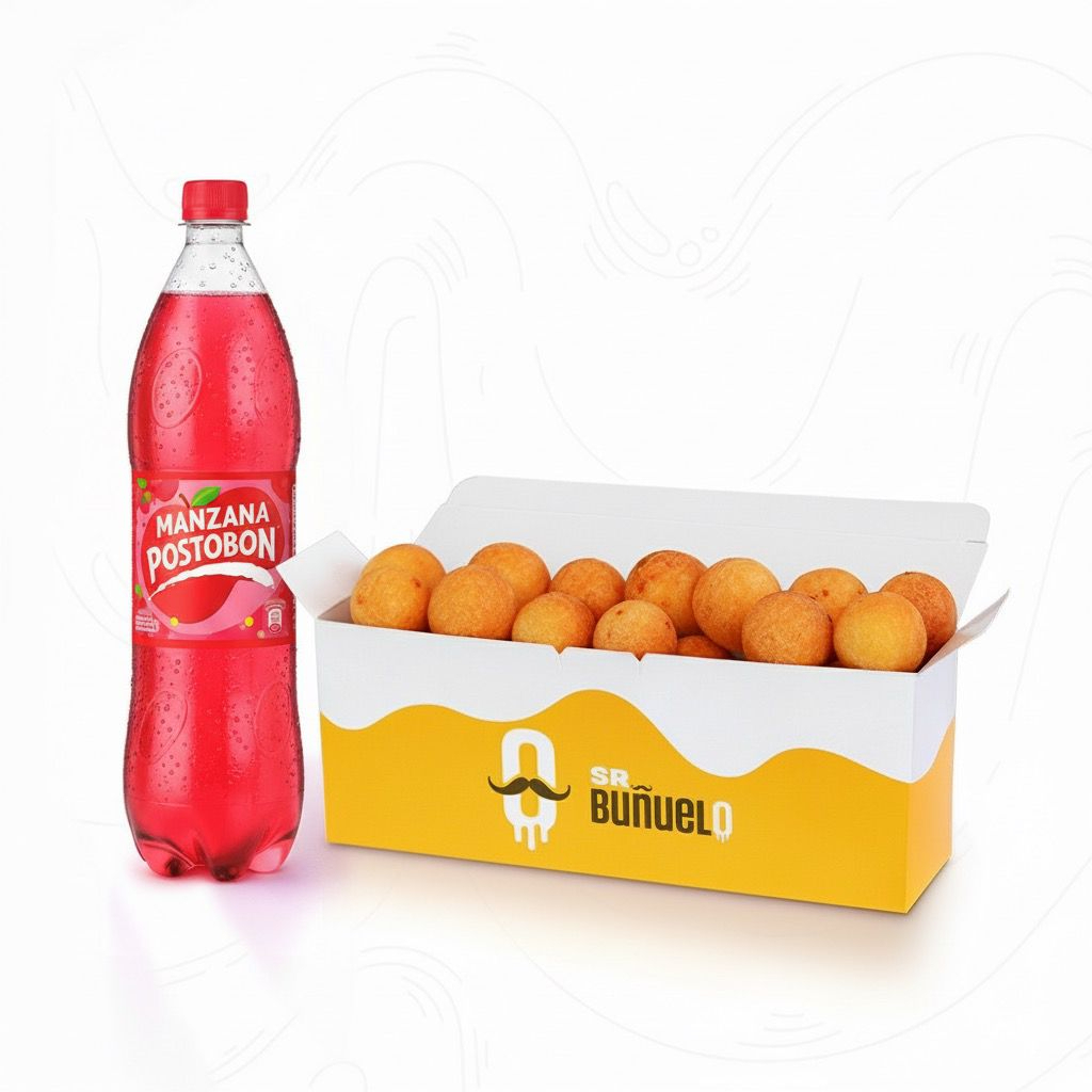Pa el parche, la familia o el combo de la oficina: 25 buñuelos tradicionales. el clásico que nunca falla + 2 gaseosa manzana postobon 1.5L