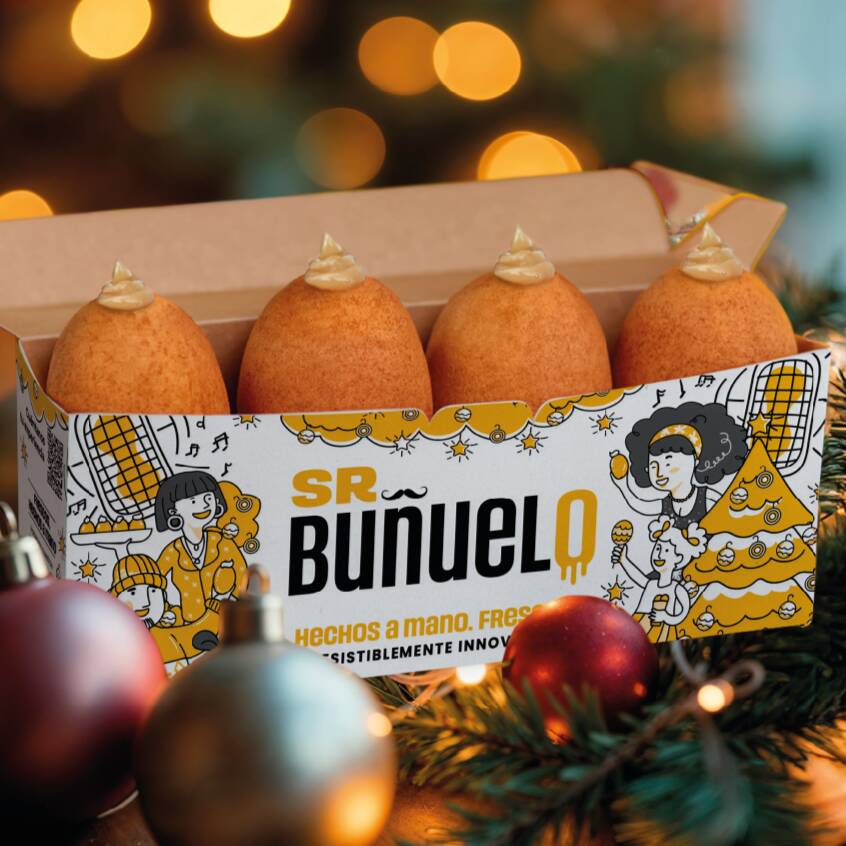 Caja con 4 unidades de buñuelos rellenos de natilla. El sabor original de la navidad