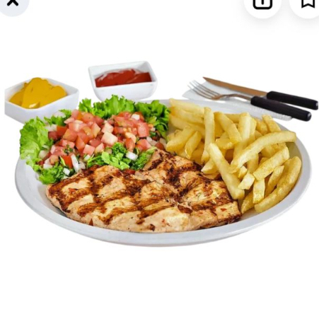 Pechuga de pollo de 200g, acompañada de papa a la francesa, arepita y ensalada.