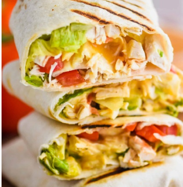 wraps con jamon lechuga tomate queso y jugo natural 16 onz