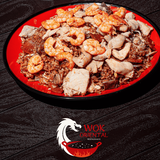 Porción Personal de Arroz Wok 5 carnes (pollo, carne, jamón, camarón y cerdo) Suficiente para 1 persona.