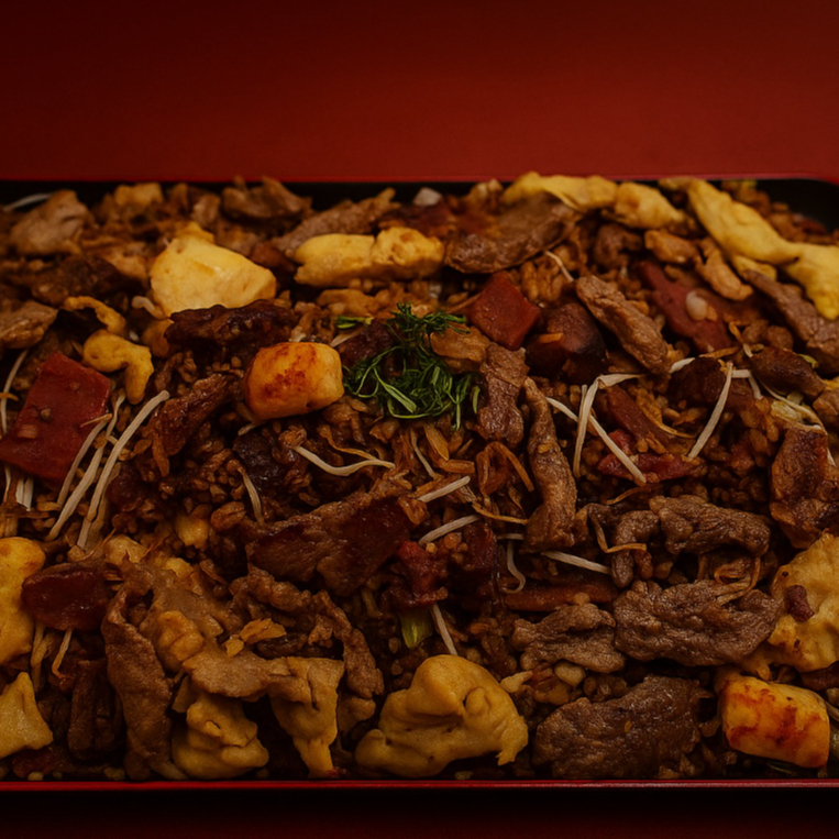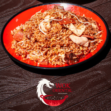 Porción de Arroz Chino Oriental 3 carnes (pollo, carne y jamón) suficiente para 1 persona