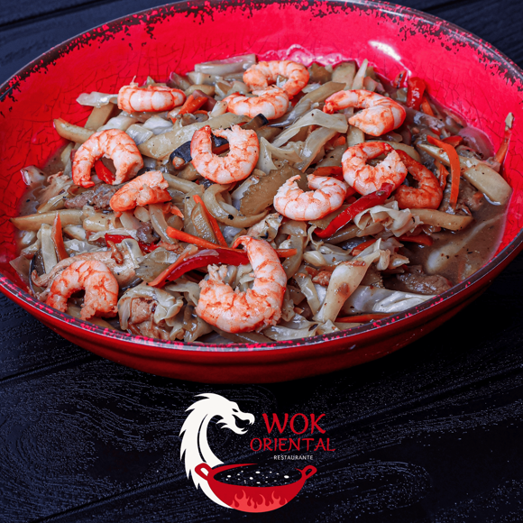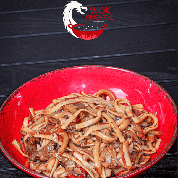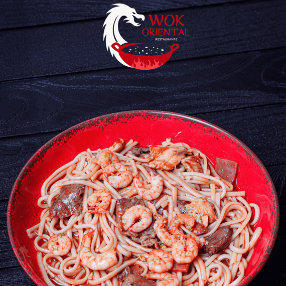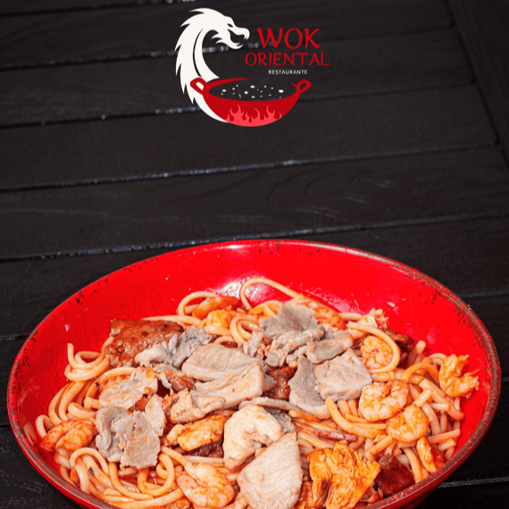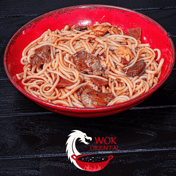 Porción Personal de Espagueti Wok 5 carnes (pollo, carne, jamón, camarón y cerdo) Suficiente para 1 persona.