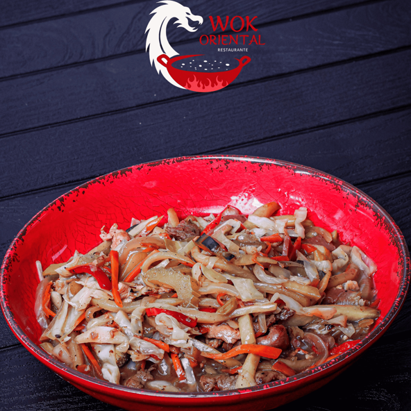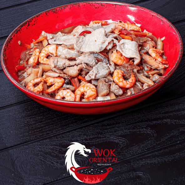 Porción Personal de Chop Wok 5 carnes (pollo, carne, jamón, camarón y cerdo) Suficiente para 1 persona.
