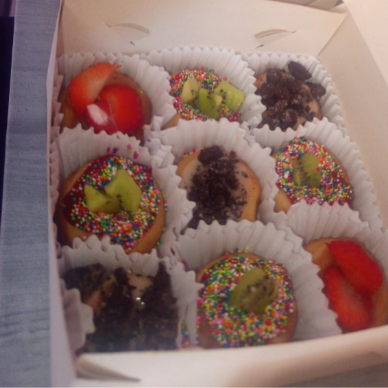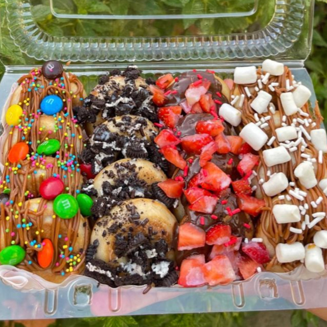 15 mini donas + 3 salsas + topping de chocolate+ galletas oreo+ fresas + masmelos