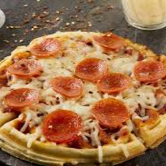 Waffle completo en forma de pizza 4 trozos con queso mozarela y chorizo