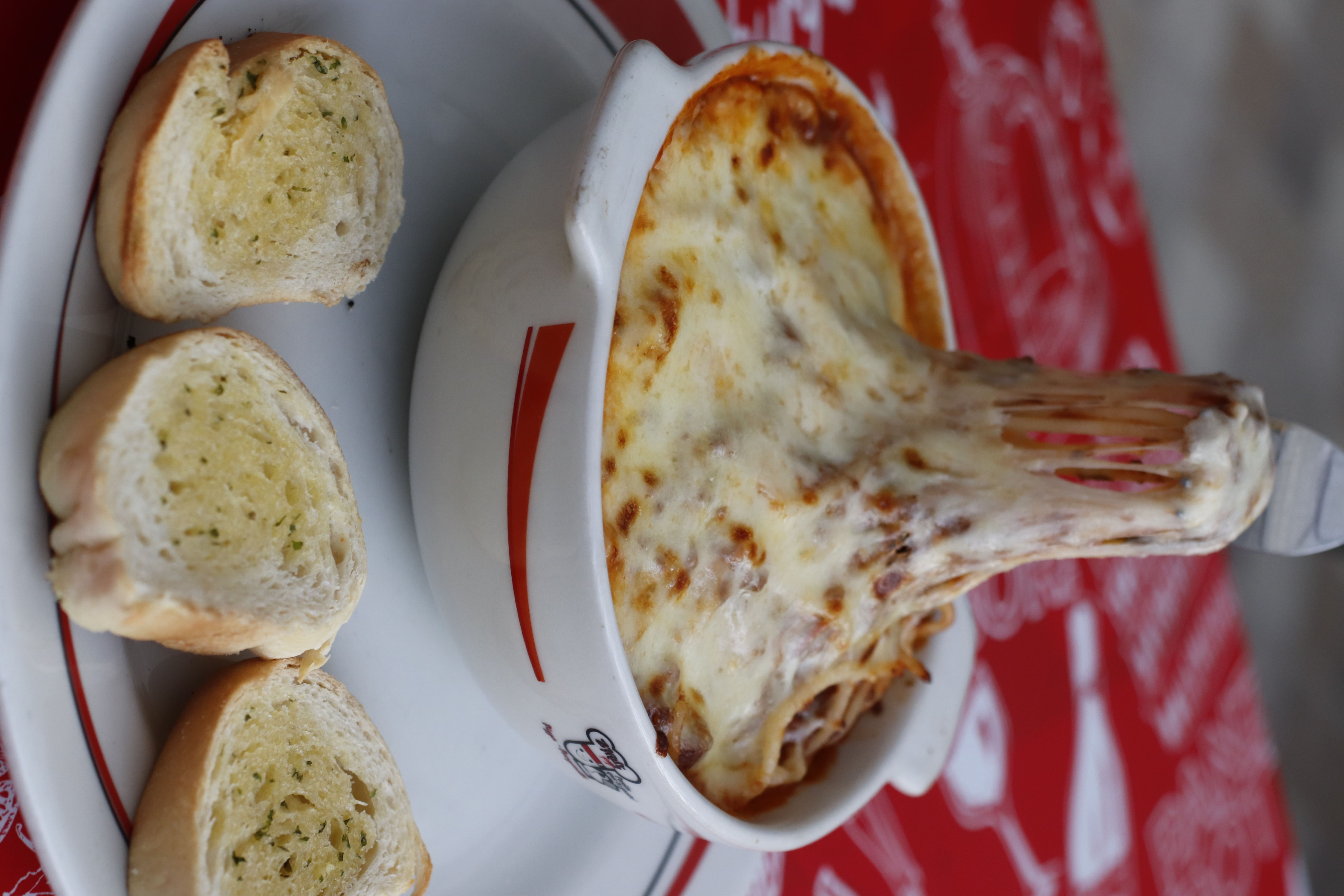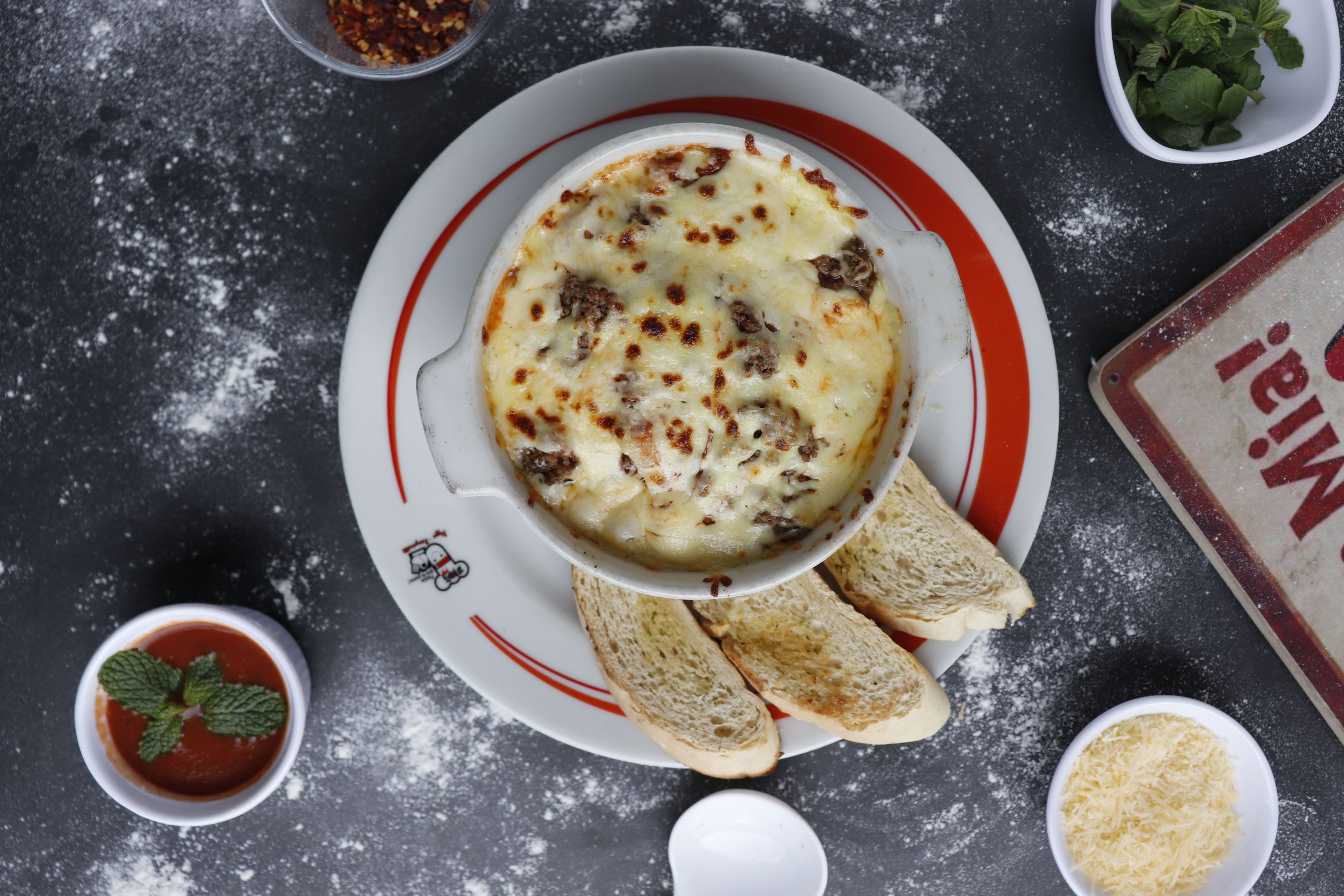 Tres capas de pasta con nuestra salsa boloñesa, carne molida y queso.