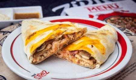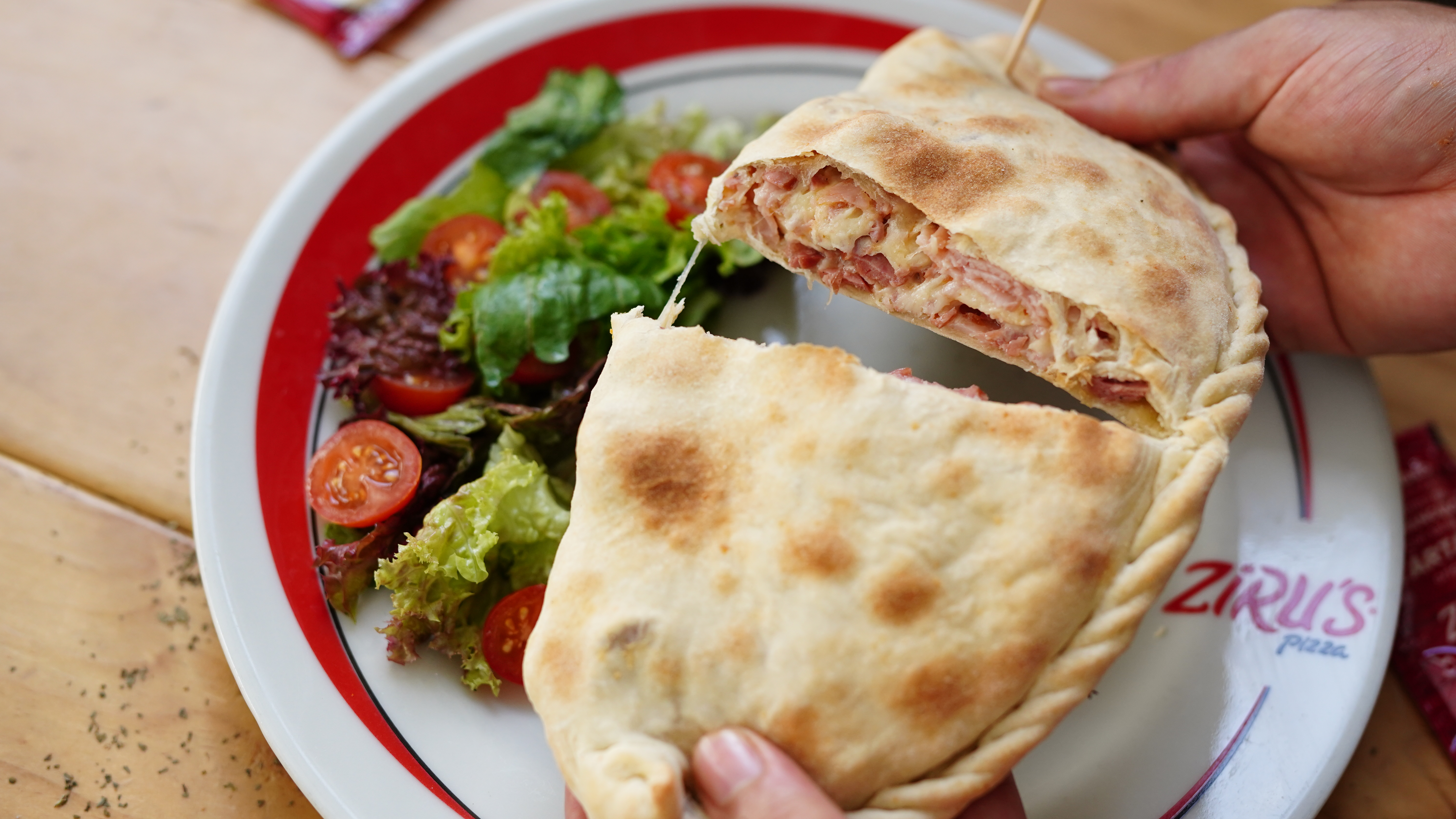 Tradicional masa Ziru´s, rellena de cábano, salami, pollo, jamón seleccionado y queso mozzarella.