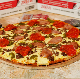 Pepperoni, tocineta, salami, queso mozzarella en nuestra tadicional masa Ziru´s.