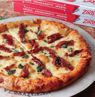 Tomates deshidratados en conserva, albahaca fresca, queso mozzarella en nuestra esponjosa masa artesanal y nuestra jugosa salsa Ziru´s; una opción ligera pero cargada de sabor, nuestro chef recomienda combinarla con vino sutter home.