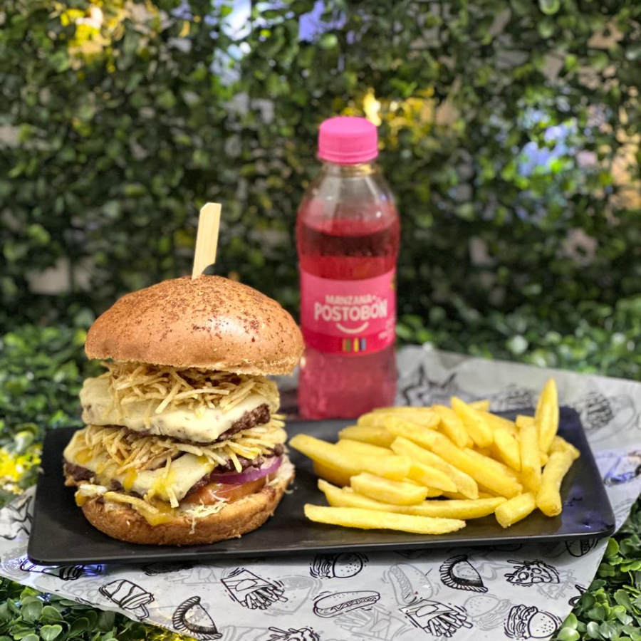 🍔 Hamburguesa Doble Carne con papas 🥤 Gaseosa Postobón mini 250 ml 🔥 ¡Más carne, más sabor, más poder en cada mordida! 🔥 ✨ El combo que te llena y te encanta ✨