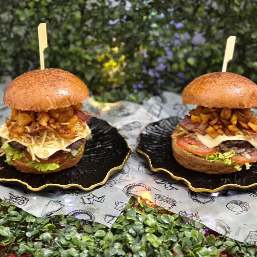 🍔🍔 2 Hamburguesas Maduritas al Carbón 🔥 Con pan brioche suave, carne artesanal 90 g, verduras frescas, cebolla, ripio de papas, tocineta, madurito y nuestra salsa de la casa. ✨ ¡Doble madurito, doble sabor que conquista! ✨