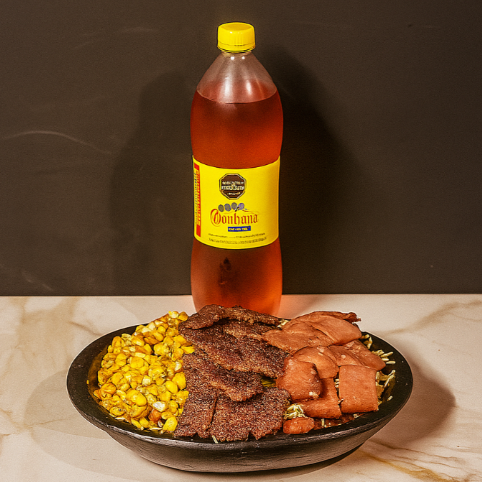 Papa amarilla, salchicha, queso, maíz dulce, ripio de papa, carne de hamburguesa, asada a la parrilla, tocineta y gaseosa econolitro.