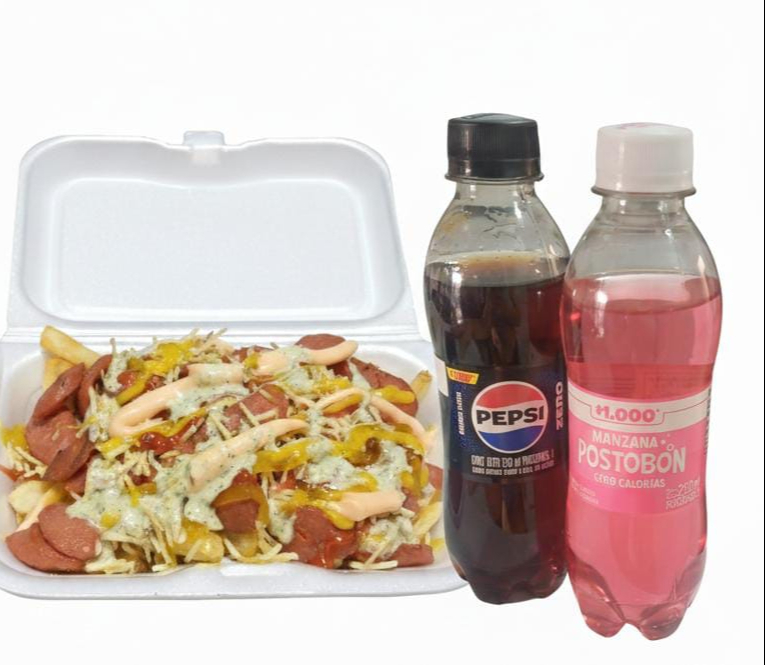 Salchipapa Para 2 o 3 Personas y 2 Gaseosas