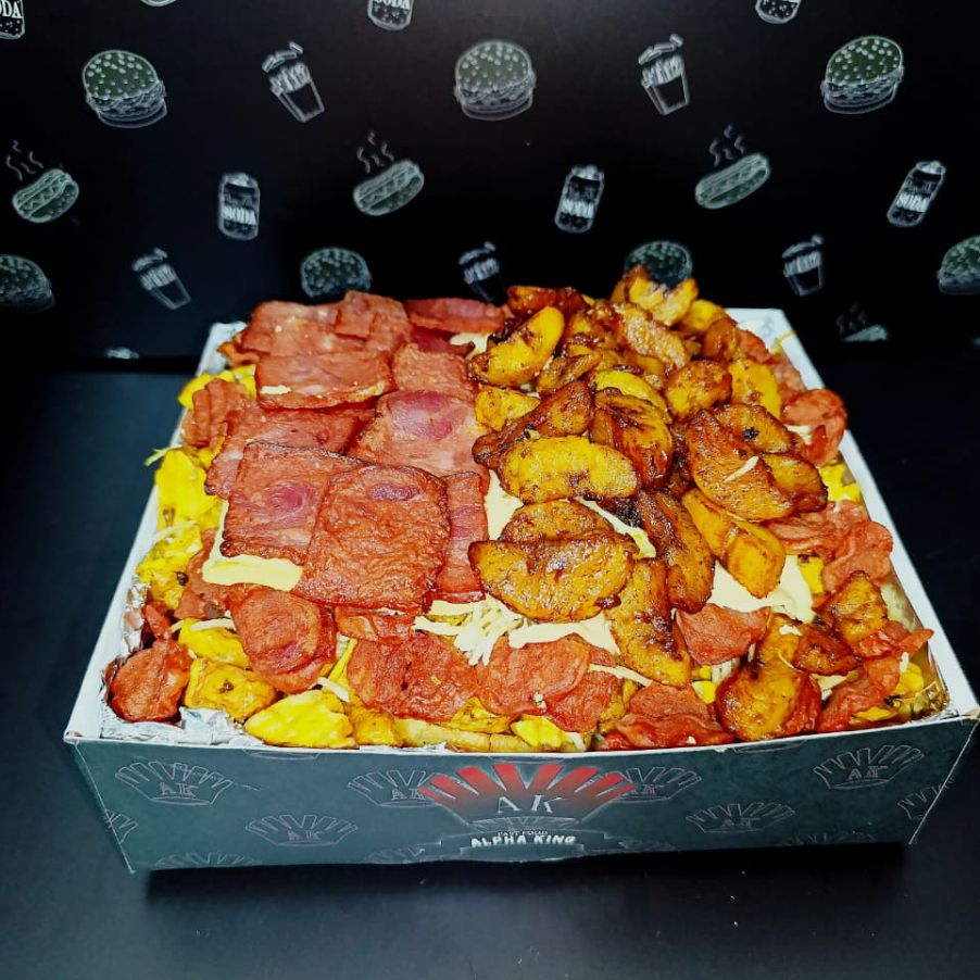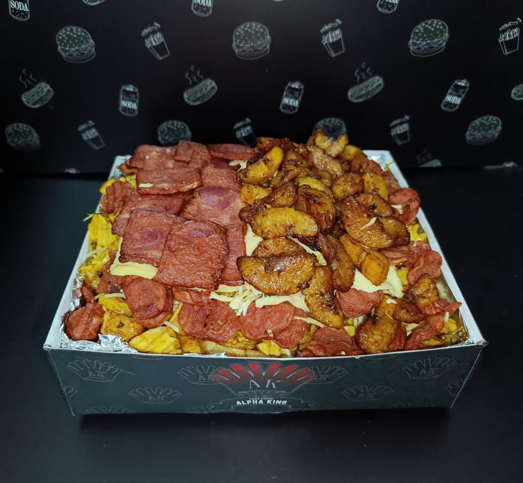 papa a eleccion,salchicha,queso,ripio,tocineta,maduro,salsas