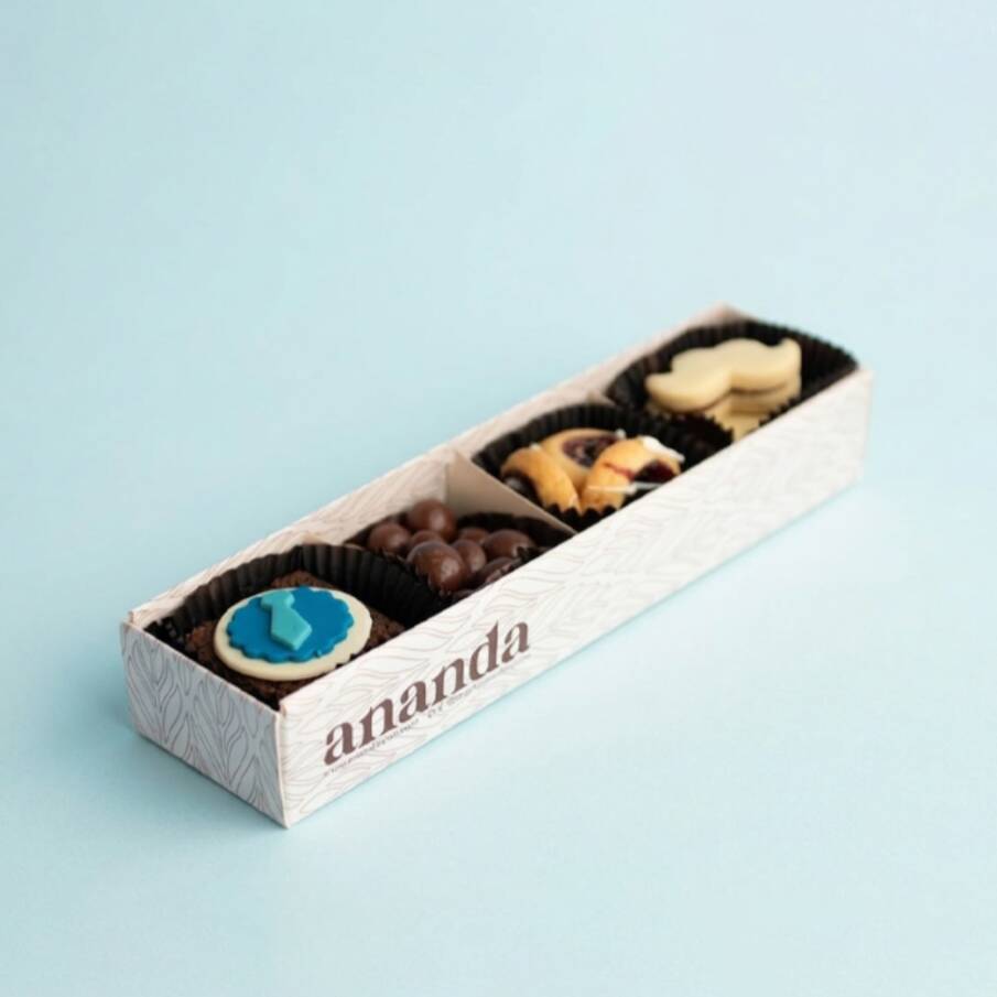 Brownies surtidos. es una caja perfecta para regalar o compartir con familia y amigos. incluye 4 mini brownies surtidos de tus favoritos de ananda.