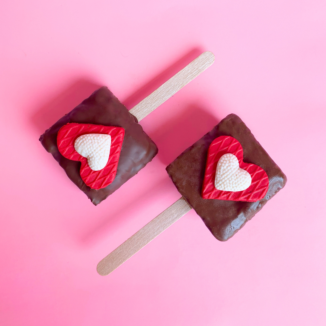 1 Paleta de Brownie de chocolate con decoración de mazapán, motivo San Valentín x unidad