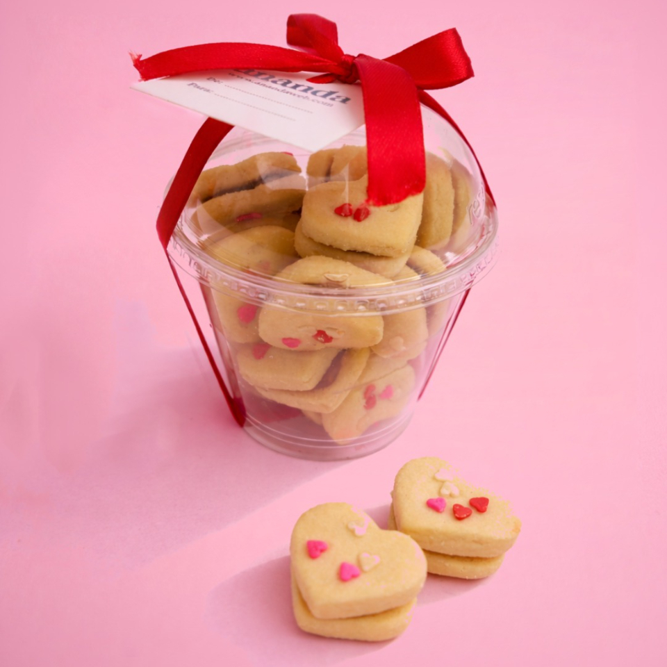 Alfajores rellenos de arequipe en forma de corazón. Aprox 15 unidades