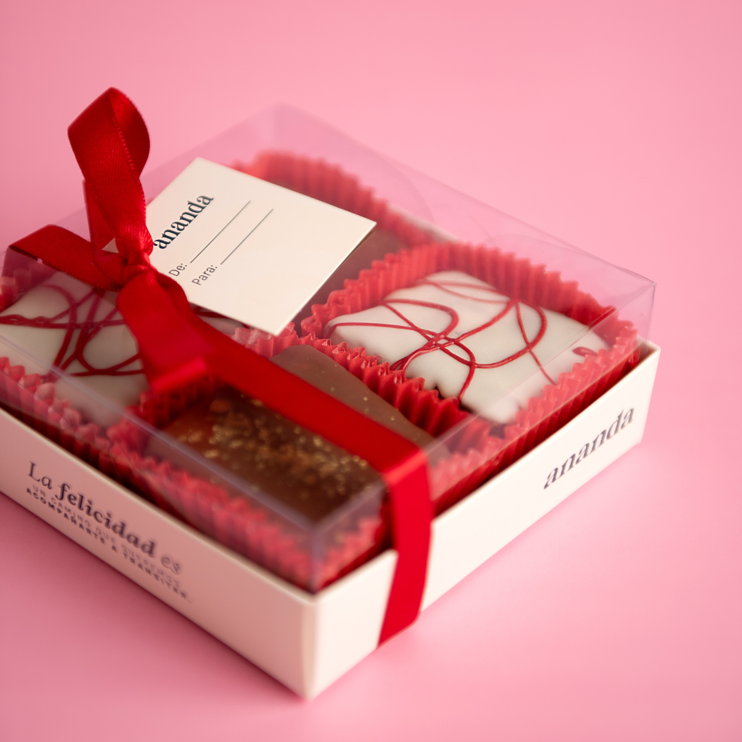 Brownies surtidos. es una caja perfecta para regalar o compartir con familia y amigos. incluye 4 mini brownies surtidos de tus favoritos de ananda.