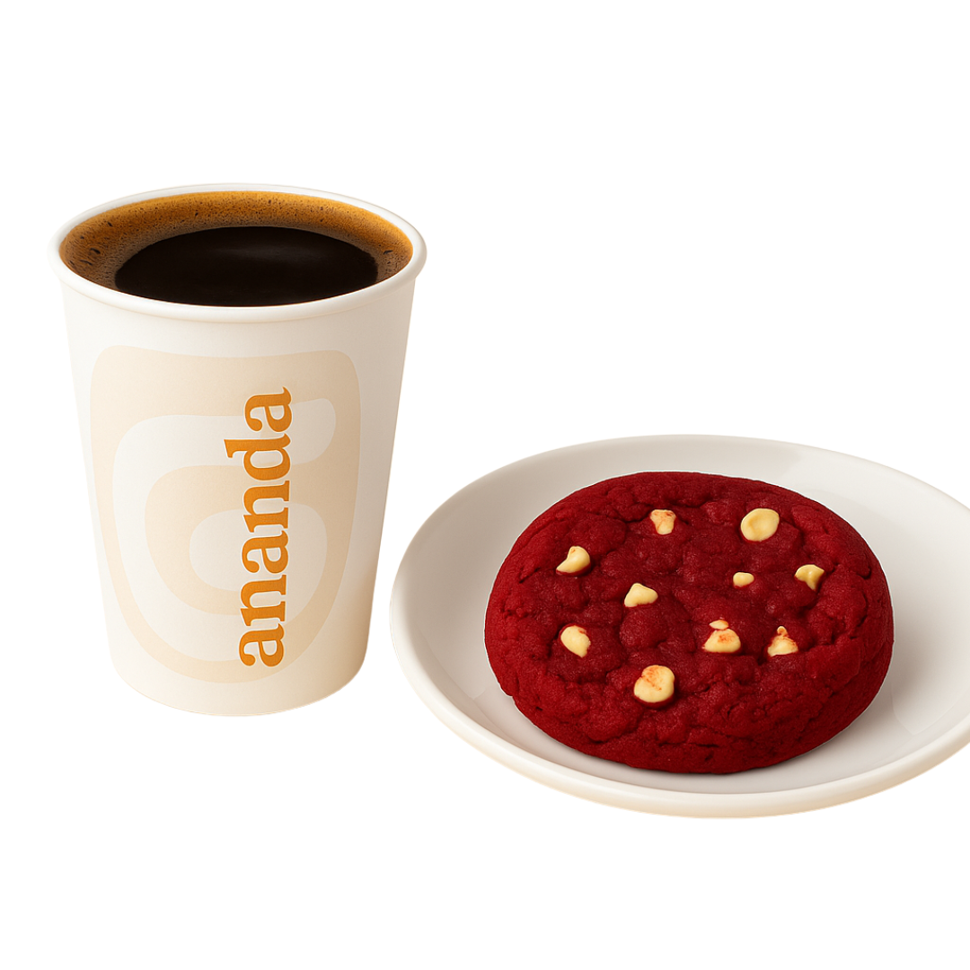 Un café americano 9 onzas intenso y aromático acompañado de una galleta artesanal a elección: bocadillo o red velvet. un balance perfecto entre sabor y tradición.
