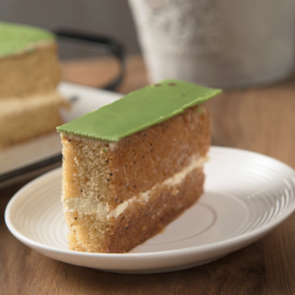 Deliciosa torta de naranja con semillas de amapola y cremoso de queso. presentación 3 a 4 porciones.
