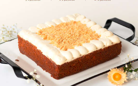 Bizcocho suave con zanahoria y especias, sin azúcar añadida, cubierto con cremoso de queso.