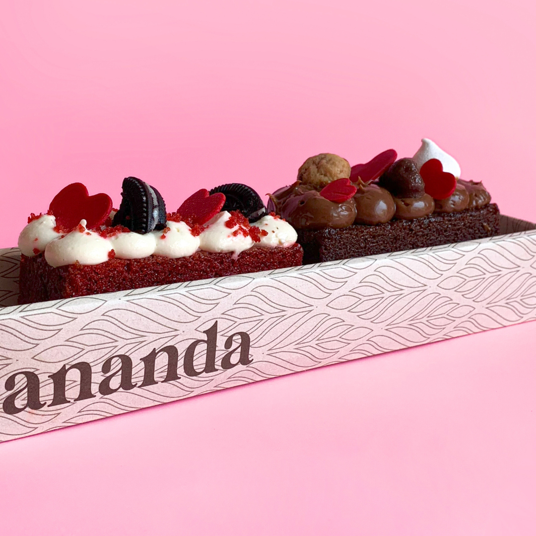 Brownies surtidos. es una caja perfecta para regalar o compartir con familia y amigos. incluye 4 mini brownies surtidos de tus favoritos de ananda.