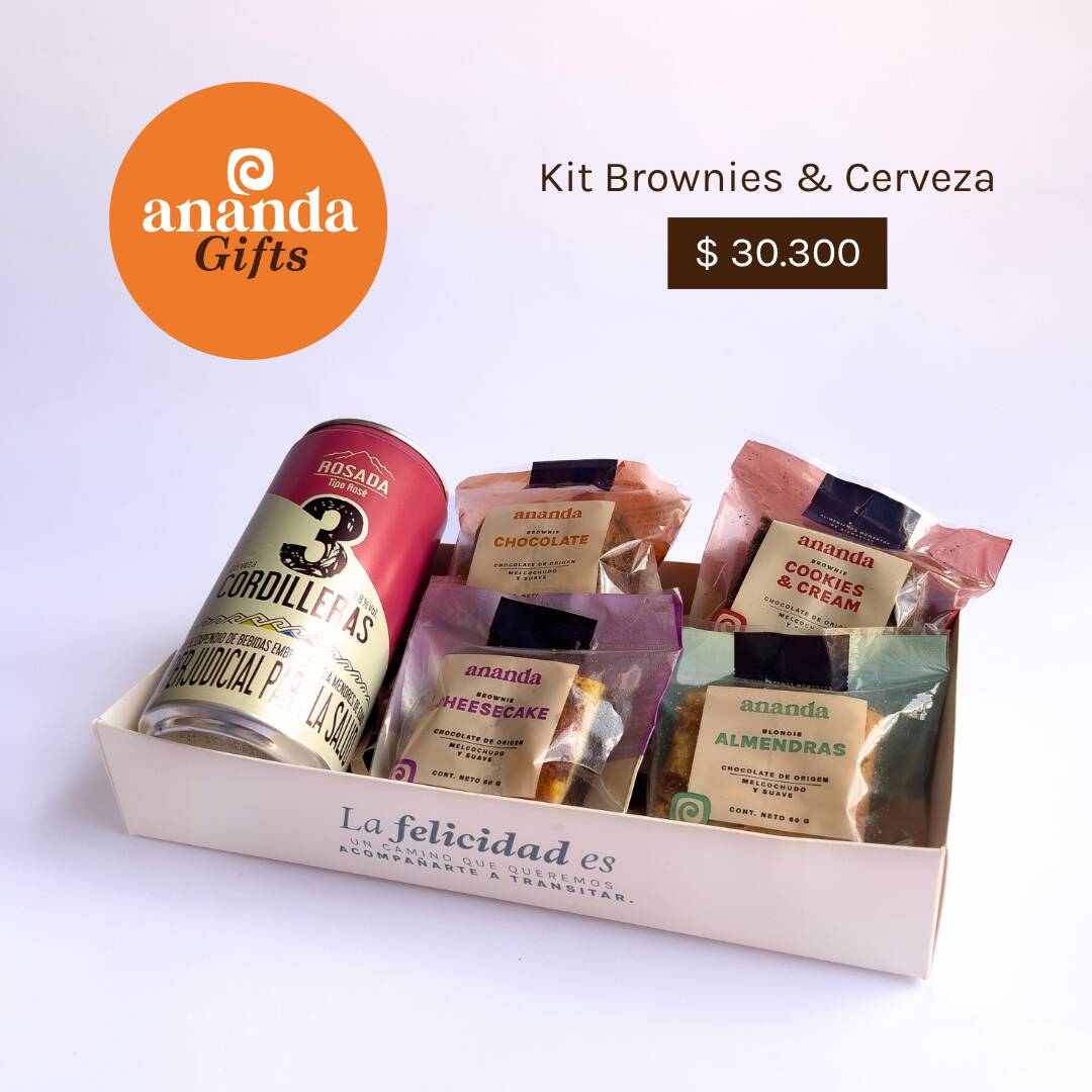 Un detalle perfecto para compartir: cerveza 3 cordilleras y 4 brownies ananda de sabores únicos.