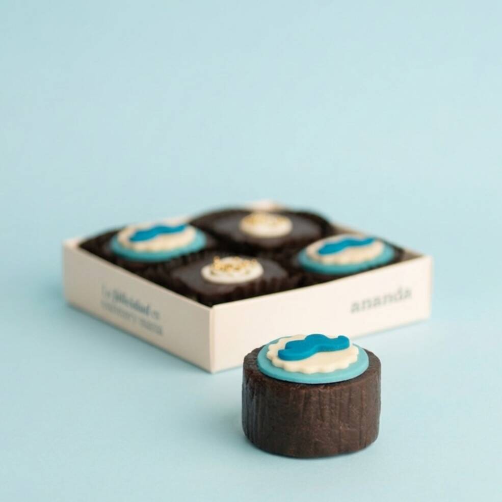 4 brownies de sabor intenso a chocolate, con decoración ideal para el momento.
