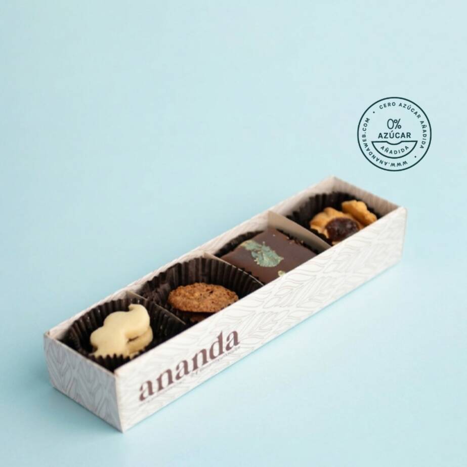 Brownies surtidos. es una caja perfecta para regalar o compartir con familia y amigos. incluye 4 mini brownies surtidos de tus favoritos de ananda.