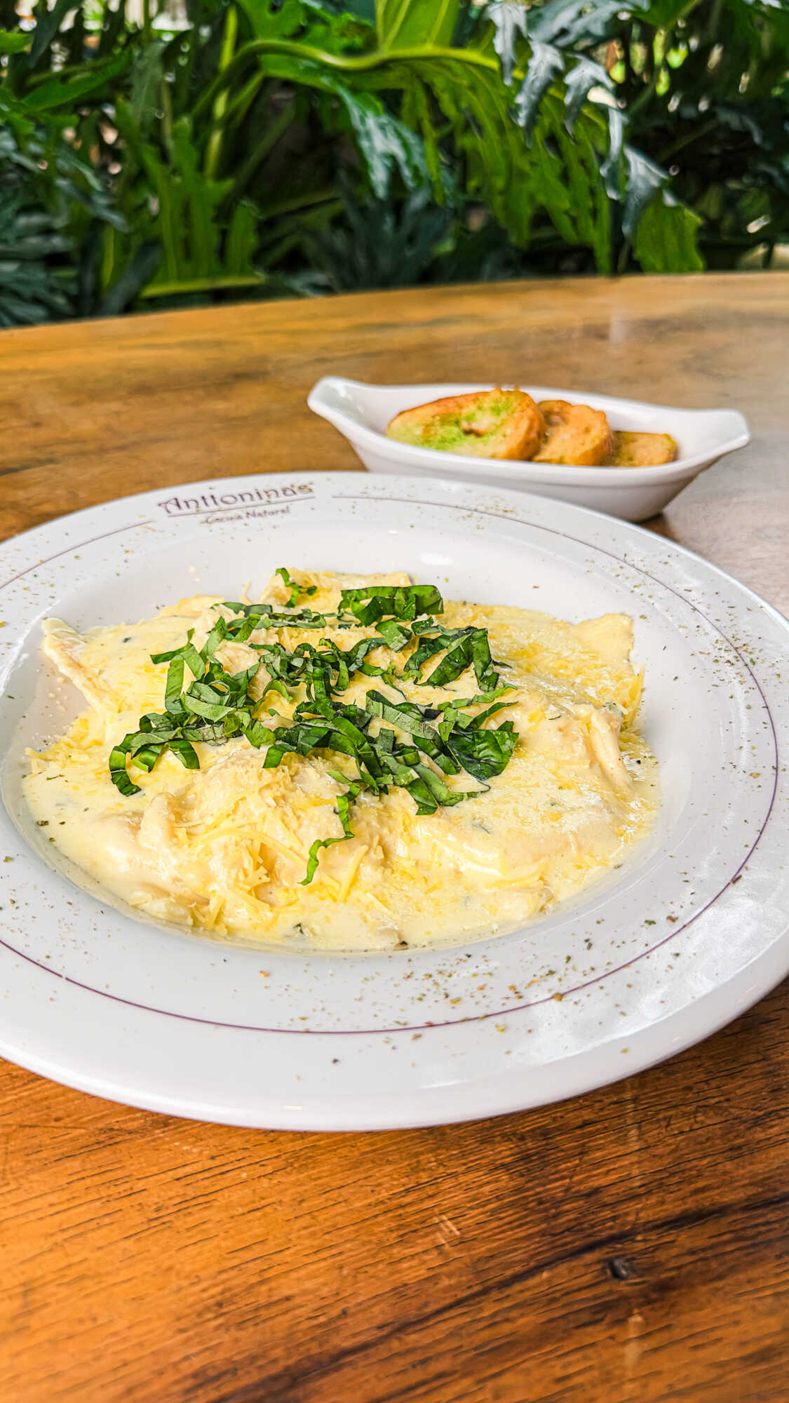 Nuestra deliciosa pasta fresca con la clásica salsa pollo tocineta de anttonina´s, acompañada con queso parmesano y pan de la casa.