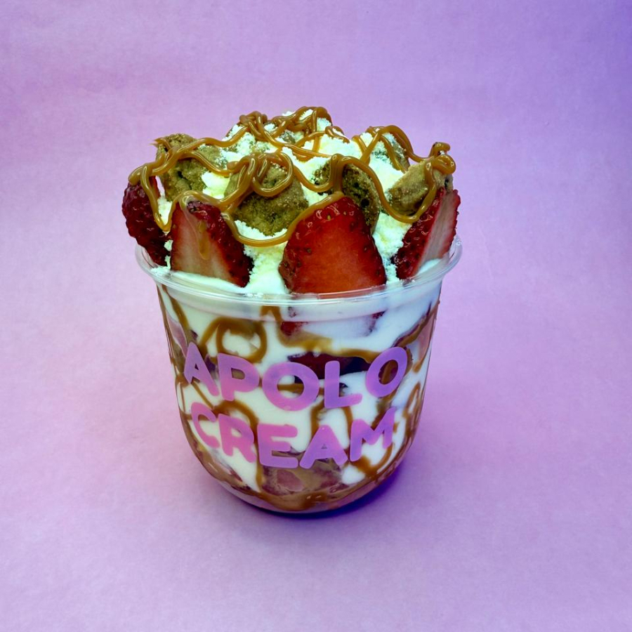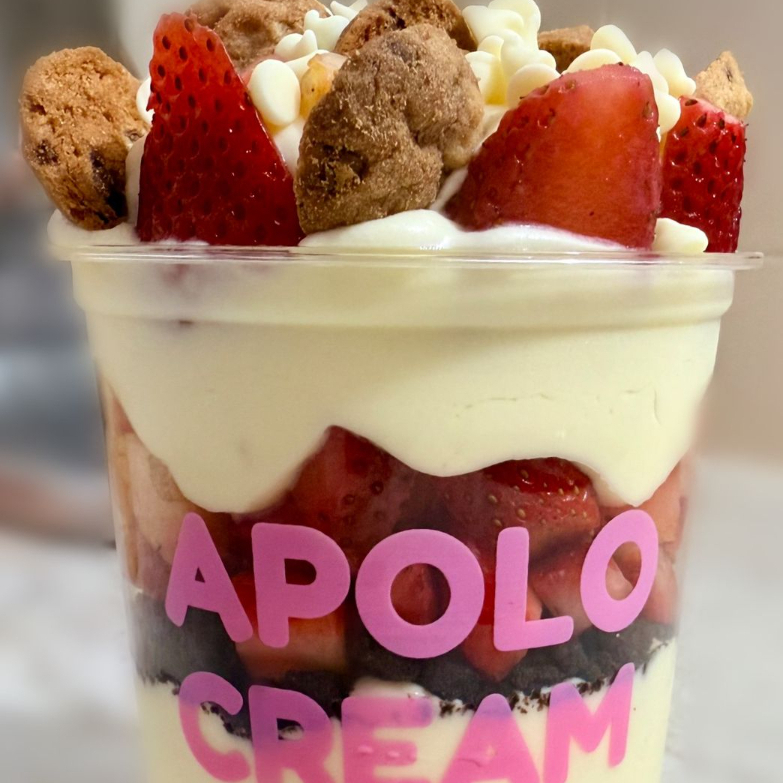Fresa con crema batida artesanal, incluye 3 topping