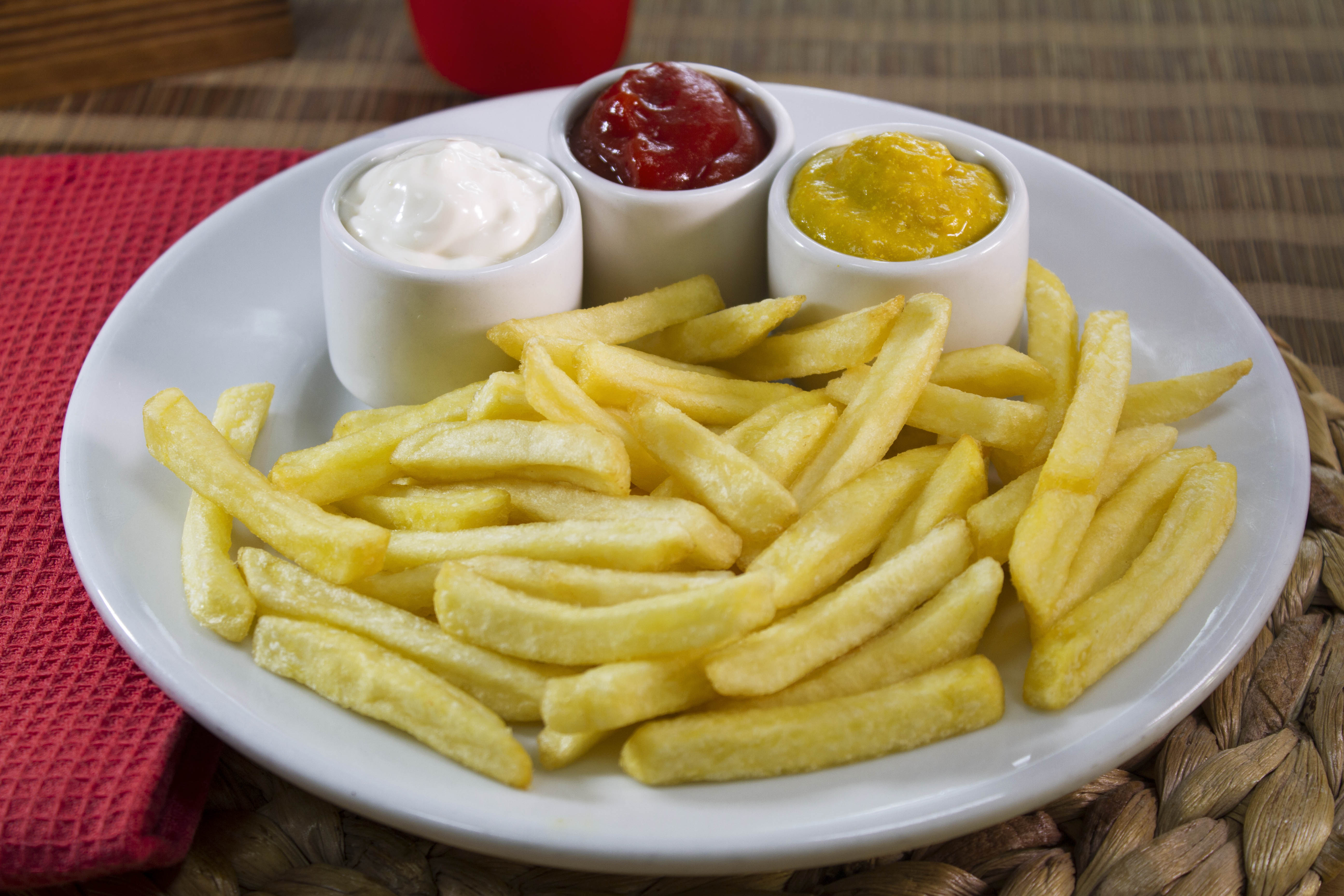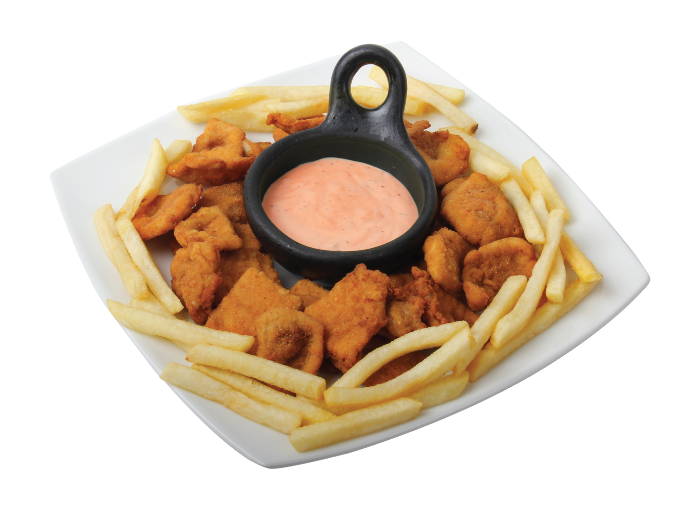 Trozos de chuleta, papa francesa y salsa showy. Escoge el tipo de carne.