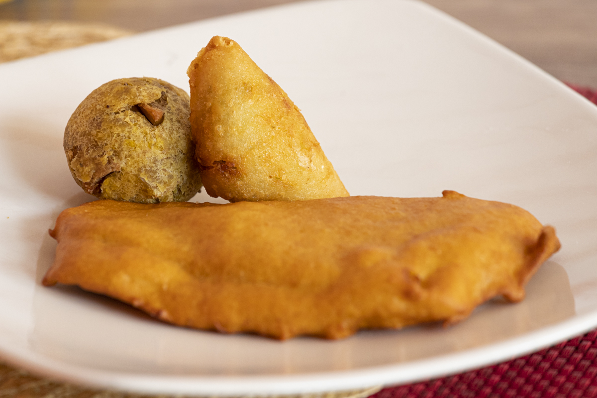 8 empanadas, 4 marranitas y 4 aborrajados acompañados de ají y salsa criolla