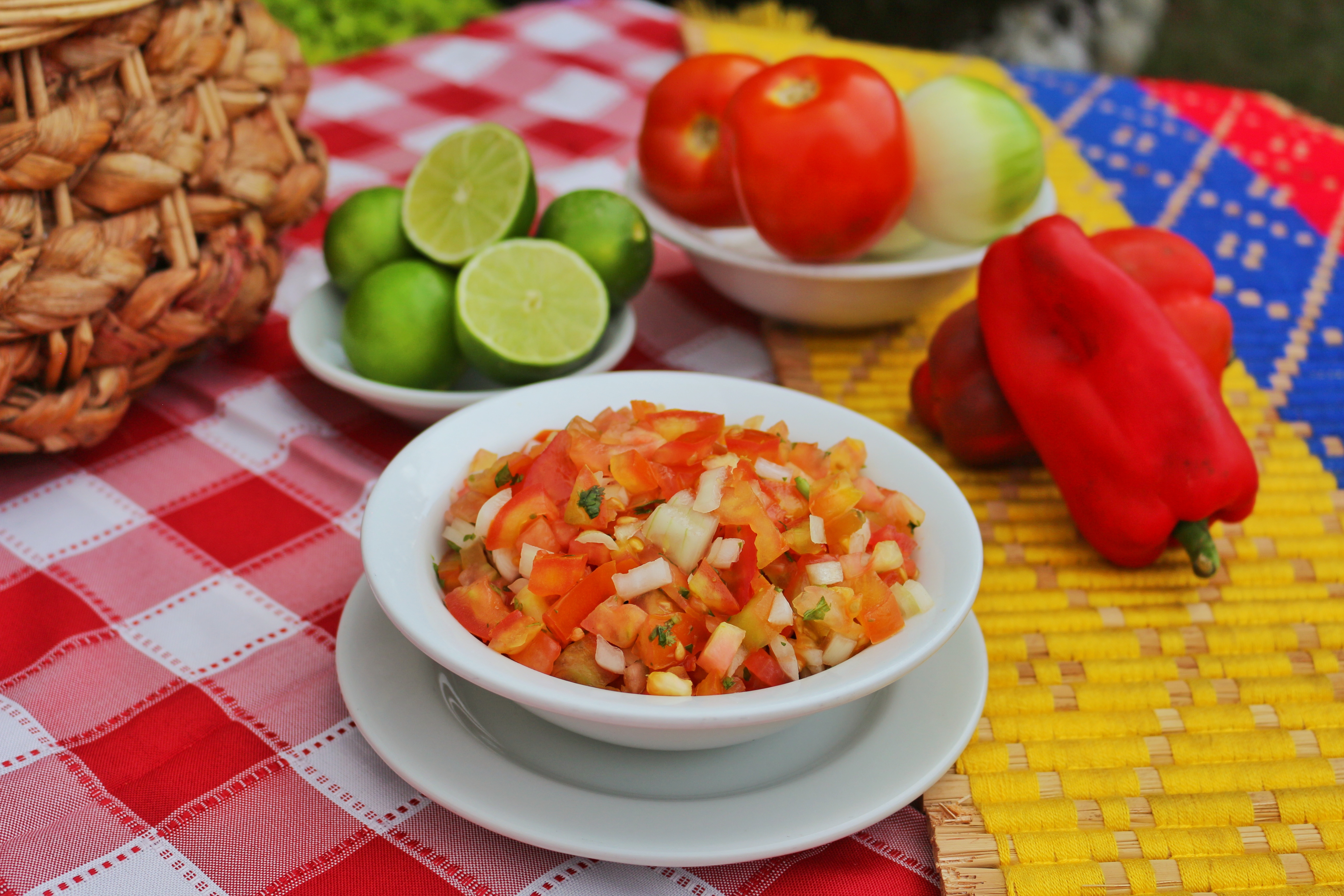 Porción de salsa criolla con tomate, cebolla, hogao.