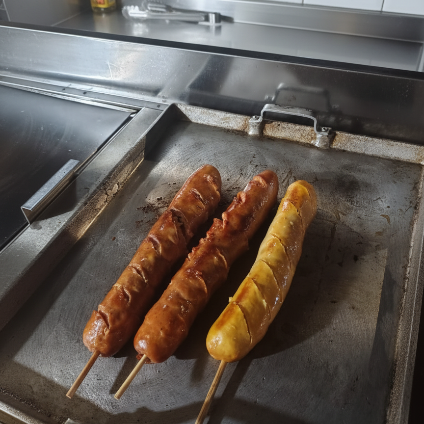 Chorizo Grande a elección (Cerdo, Pollo, Res) + Arepa Grande blanca de maiz asadita.