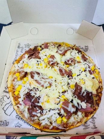 Carne, pollo, chicharrón o tocineta queso, cebolla, ripio, maíz y salsa de la casa (ajo).